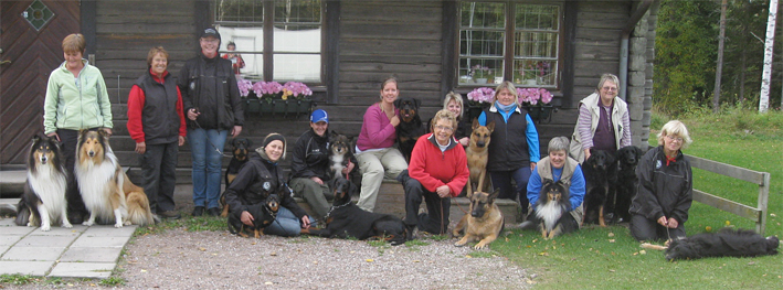 | Lördagen ägnades åt instruktörerna. Vi diskuterade kursmaterial i allmänhet och koncept ALLMÄN-LYDNAD i synnerhet. Vi såg tillsammans DVDn Allmänlydnad 2009. Arbetsplanerna presenterades och ute övade vi tillsammans olika övningar som ingår i kursmaterialet. Fyrklövern presenterades och övades. Hundarna blev koncentrerade och fokuserade på sina förare. KOM-övningen, där ledaren tar hunden ifrån föraren blev väldigt populär för att inte tala om "Leverpastej"-övningen där hunden bärs/dras tillbaka när den inte kommer vid anrop utan fortsätter att slicka i sig det goda. Efter en eller två hämtningar valde alla hundar att åtlyda ordet KOM. Lönsamt för både hund och förare ... |