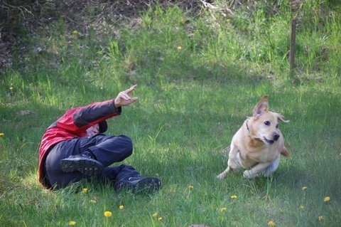 | ... kastar belöningen från hunden | .. just det ... från hunden ... |