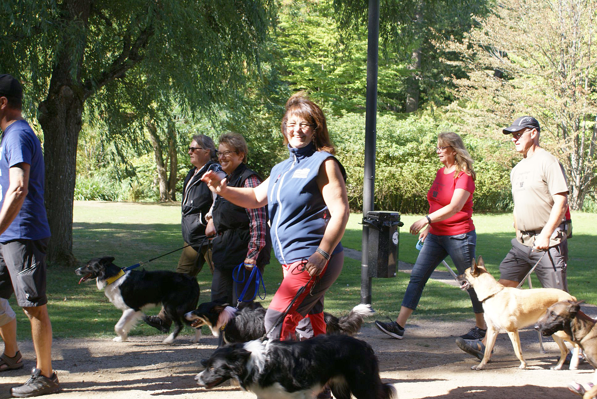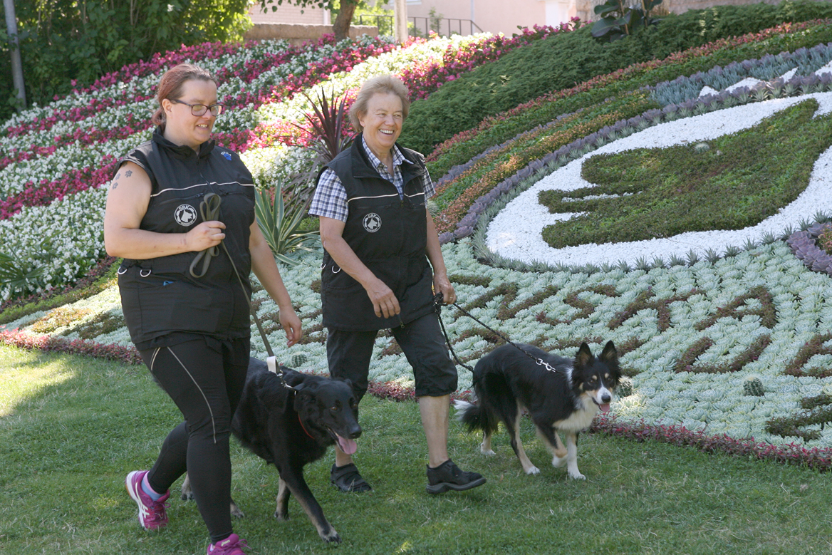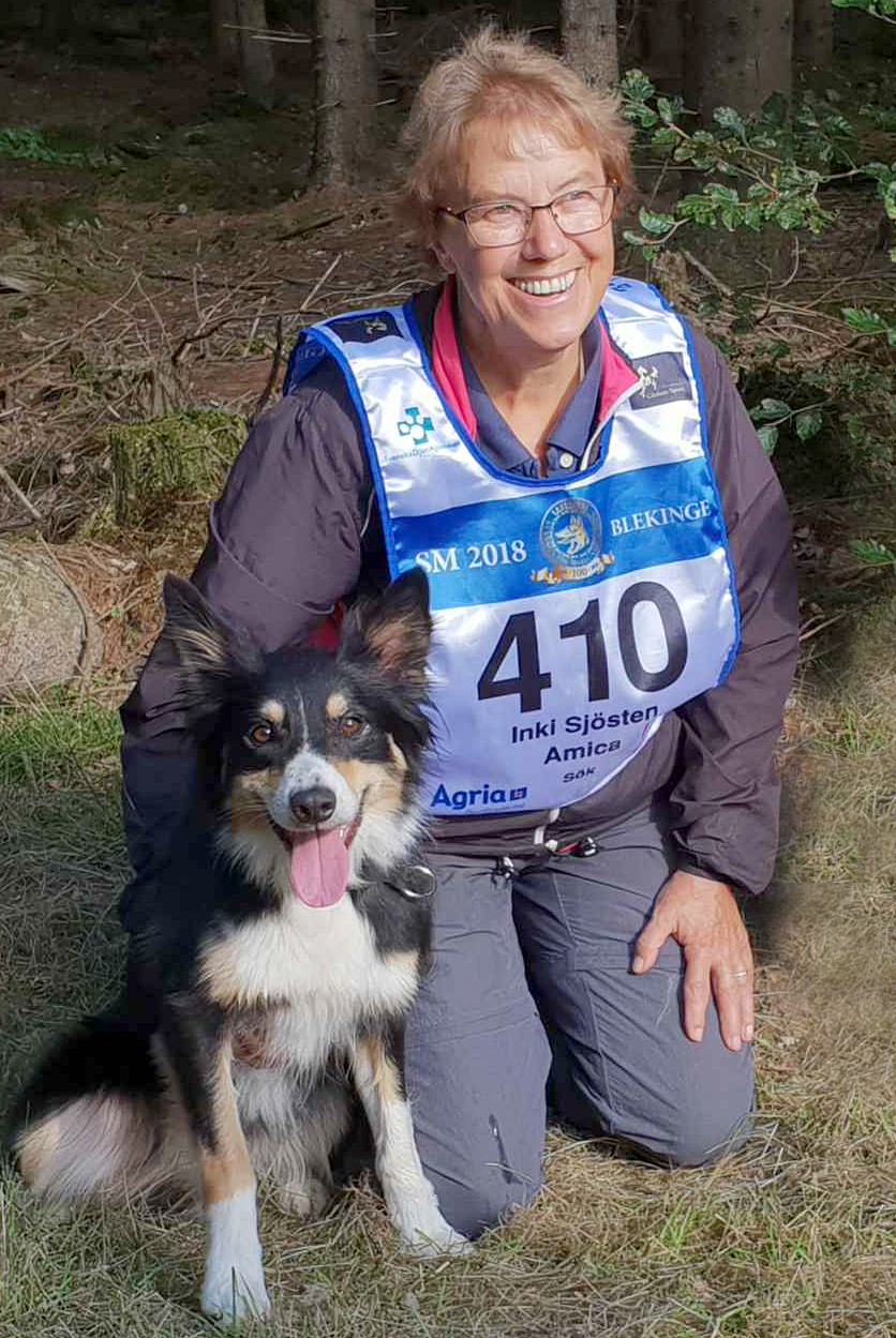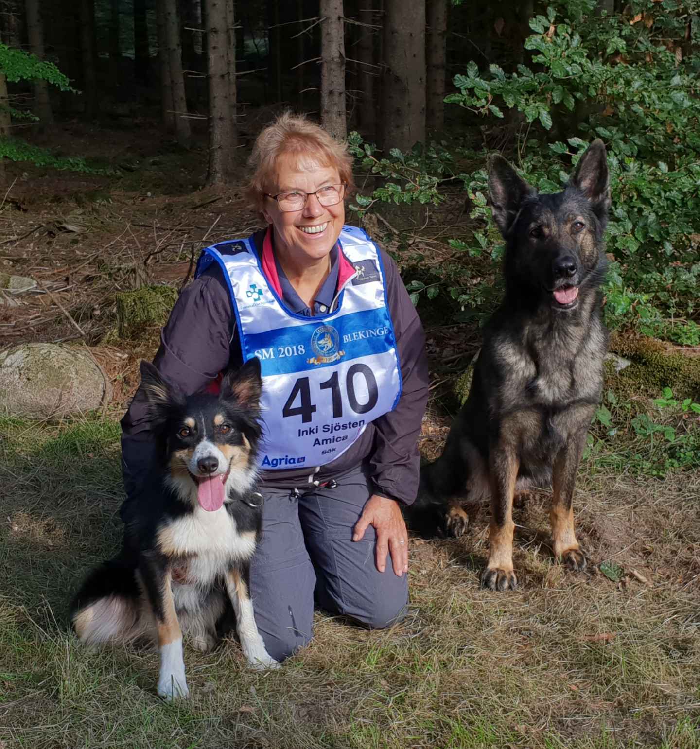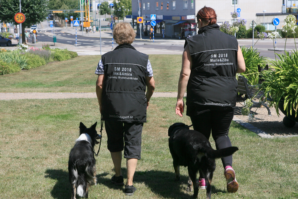 Två ekipage från Ronneby Brukshundklubb tävlar SM 2018. Marie Mathiasson med Ziba i Patrullhundsgruppen och jag och Amica i sökhundsgruppen. Här går vi framför Ronneby kommuns plantering med motiv SBK:s 100-års jubileum. |