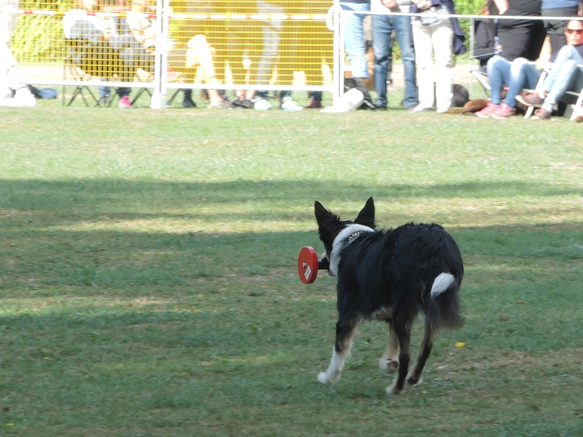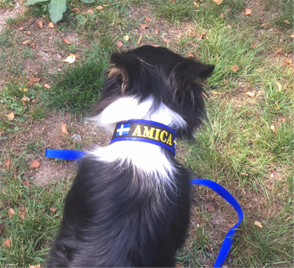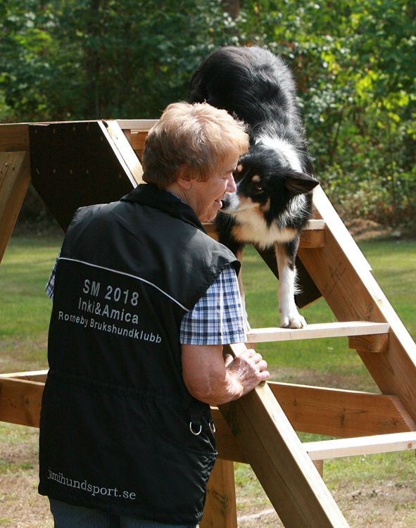 | 19/7 tog Roland några bilder på mig och Mica. Här posering. | Bild som visar fina västen vi fått av Ronneby Brukshundklubb. |