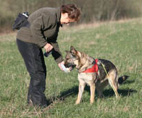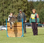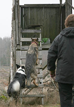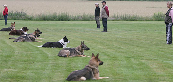 | Och så tränade vi platsliggande ... Stay down in a group | och här blir det uppletande av Tina/Zoo Searching objects for breeder Tina and Zoo | och Pelle/Mint är klara för belöning. Breeder Pelle is ready for reward. | |