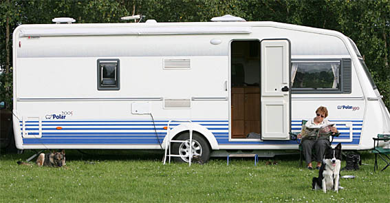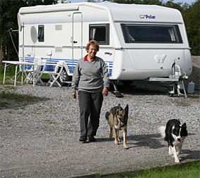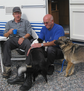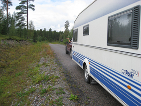 | Danne och Carina poserar. Ours hosts. | Roland och Danne pausar. A break | Vi hade vår husvagn hos D&C. Fint! Our caravan was placed at Carina and Danne. Very good. |