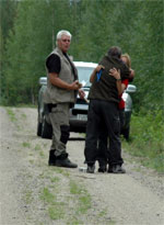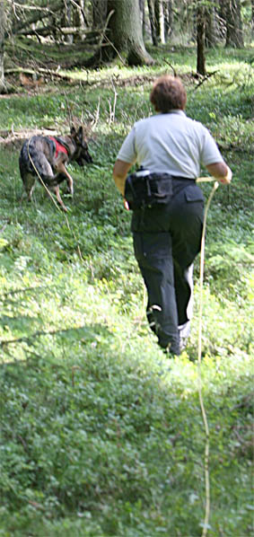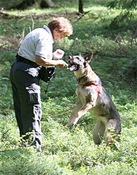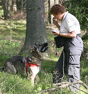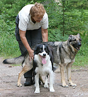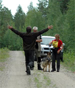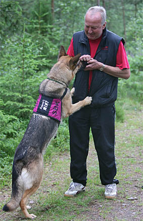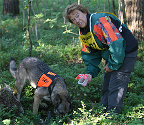| Inki och Kaksi tränar spår. Leverpastej - hurra! Training of track with paté. Mmmmm. | ... och en apport till hittas ... we found an object | Åse, Tina, Inki och
