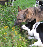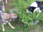 | Kaksi och Zelo åter krusbär 16 juli 2007. Eating gooseberries in the garden |