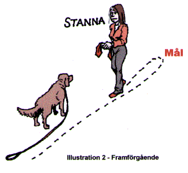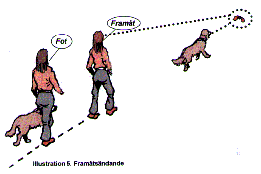 av Inki Sjösten I dette nummeret blir det forangående og fremadsending. Momentet brukes kanskje ikke så ofte i hverdagen, men forhåpentlig kan de være av interesse for alle, som et ledd i at hunden lærer seg å høre og gjøre på avstand fra føreren. Inki kobler denne artikkelen sammen med momentet så innlæringen av fremadsending blir lik forangående. De meste av det som Inki skriver her har suksesrikt prøvd, men en del detaljer er ’nyskrevne og dermed uprøvd’. Her kommer Inki konsept. ALLMENT Innen du påbegynner treningen av fremadgående og senere også fremadsening bør du nøye lese gjennom konkurranse reglene for momentet. Se på video (Lydnad&Bruks) eller i virkligheten på en brukskonkurranse hvordan momentet ser ut. Legg også merke til hvordan dommer kommanderer. HUNDENS HOVED BILDEASSOSIASJON Hvilken bildeassosiasjon passer for din hund? Hva skal den tenke på for at momentet skal bli godt innlært? Har hunden gjenstandsinteresse så bruk gjerne gjenstand for eksempel ball eller fille, som mål gjenstand og retningsgiver. Er godbit mer interessant, så bruk det – i en stor pose, som synes godt. I begge tilfellene er det primært føreren som henter mål gjenstanden til hunden ellers blir det ukonsentret trening. I begge tilfellene skal målgjenstanden gjemmes for at slutten skal bli værende i hundens minne. Minne for hva og hvor belønning finnes. En bildeassosiasjon. I FORKUNNSKAP Forangående: Hunden bør kunne linføring (fot/ på plass) samt ordene stå og slutt. Fremadsending: Hunden bør kunne momentet fri ved foten (fot/ på plass), ordene rolig, stå og slutt, momentet innkalling (hit eller kom) ORDINNLÆRNING * MOMENTINNLÆRING Jag anbefaler at du lærer hunden din de ulike kommandoordene, som kommer å inngå i momentet. * Fot er kommandoordet ved lineføring og fri ved foten. * Hit er kommandoordet ved innkalling * Stå/ bli stående er kommandoordet for å bli stående på et sted Innlærning av disse ordene/ momentet tas ikke opp i denne artikkelen. * Rolig er derimot et ord som vi normalt ikke lærer hunden noen eksakt betydning av. Det bør vi gjøre for at det unnværelig, når hunden drar i vei for fort ved treningen av forangående og fremad sending. Gjør sånn: Når hunden på lufteturen er foran det og har oppmerksomheten rettet fremover si rolig høyt og tydelig og kast en belønning eks. ball rett bak hunden. Ha gjerne flere baller/ godbiter, hvis hunden ikke skulle legge merke til den/ de første. Når hunden tar ballen/ godbiten, si slutt og nonchalere hunden. (Rolig får ikke bli et innkallingskommando….) Målet er at når du sier rolig skal hunden vende på hodet for å se om du kaster noe bak den. Om du ikke gjør det skal hunden fortsatte fremover, men har da oftest saknet farten og det er meningen med ordet rolig. * Slutt er et tydelig og bra ord som for hunden skal betyd at den er fri fra førerens tidligere kommandoord. Den skal få gjøre akkurat hva den selv vil. Er vi dyktige på å trene hund kommer hunden å gjøre det vi planlegger eksempel leke ballen som vi kastet bak hunden, når vi sa rolig.
