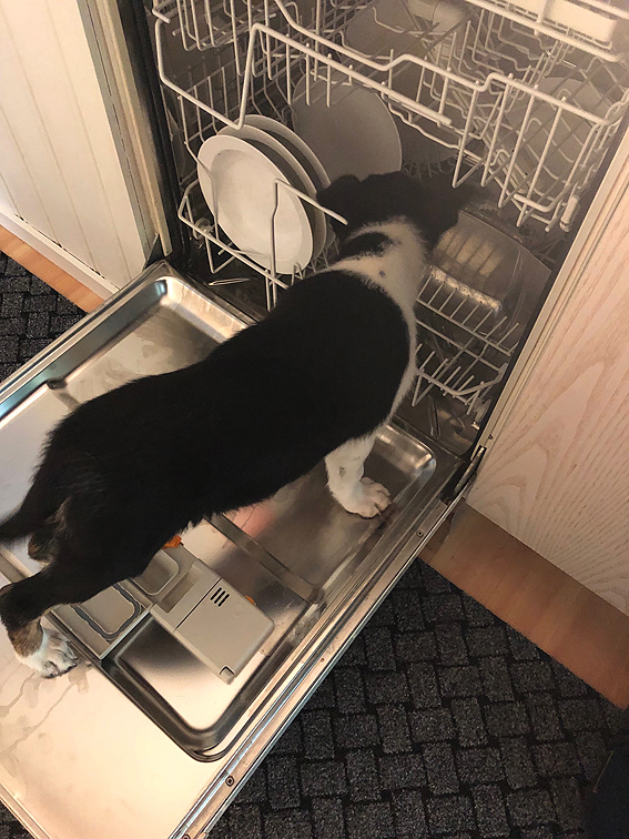 | Som för alla våra tidigare valpar, så ska diskmaskinen undersökas en gång före förbudet... |