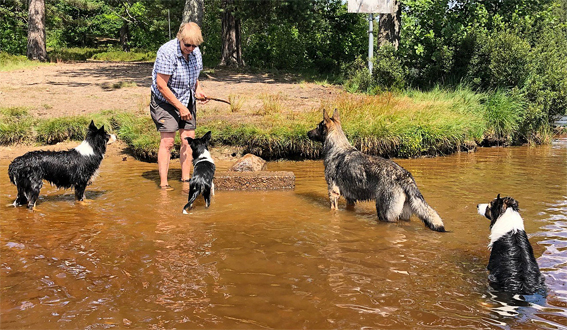 Lite sitt före fortsatt badande. Prio, Yksi och Mica ser uppmärksamt på matte Inki. Reggie har annat i tankarna.... som vanligt vid vatten... |