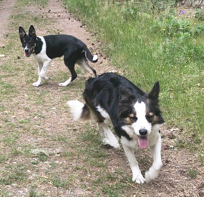 20190627 - Prio och Reggie ute ensamma med husse. Stor blir han "lille" Prio född 1mars. |