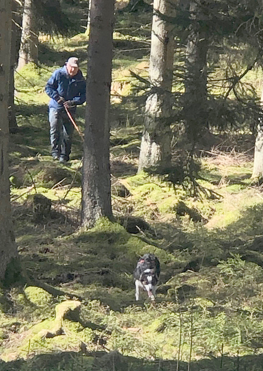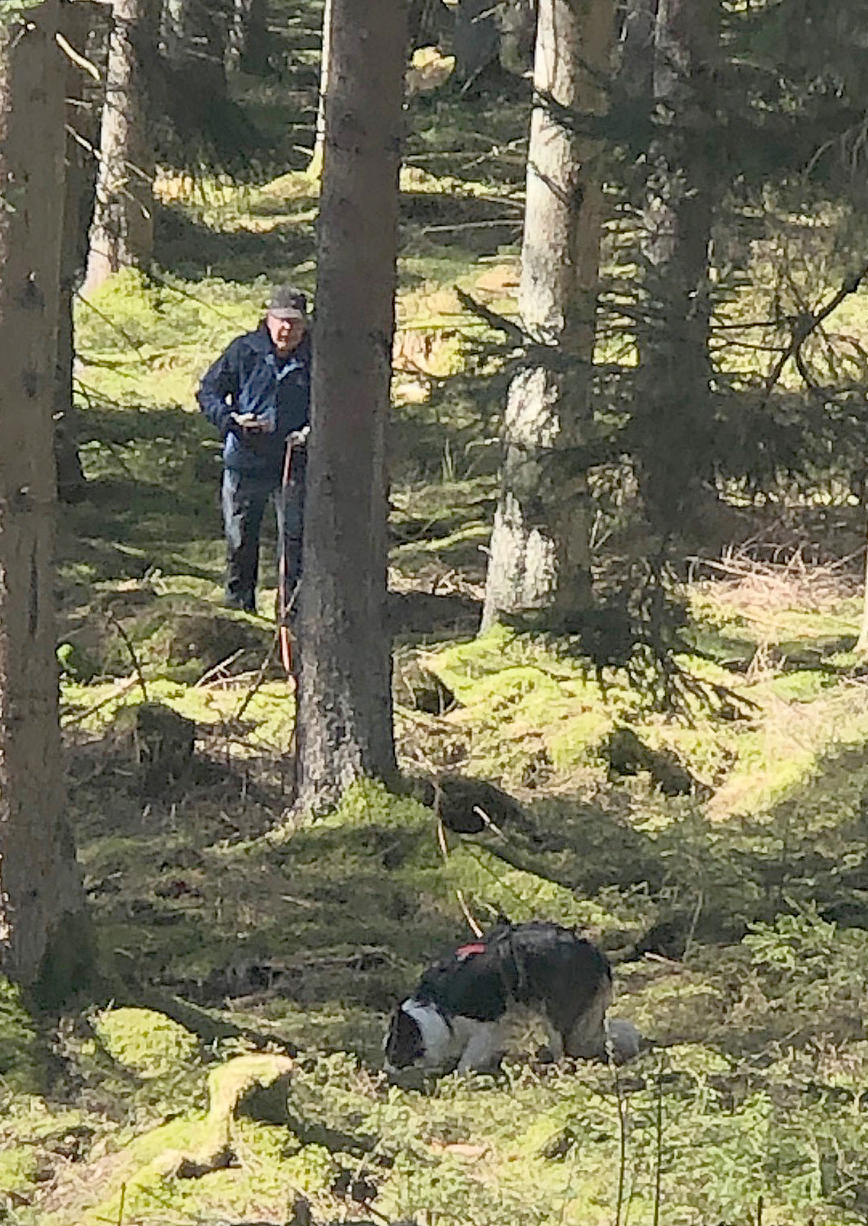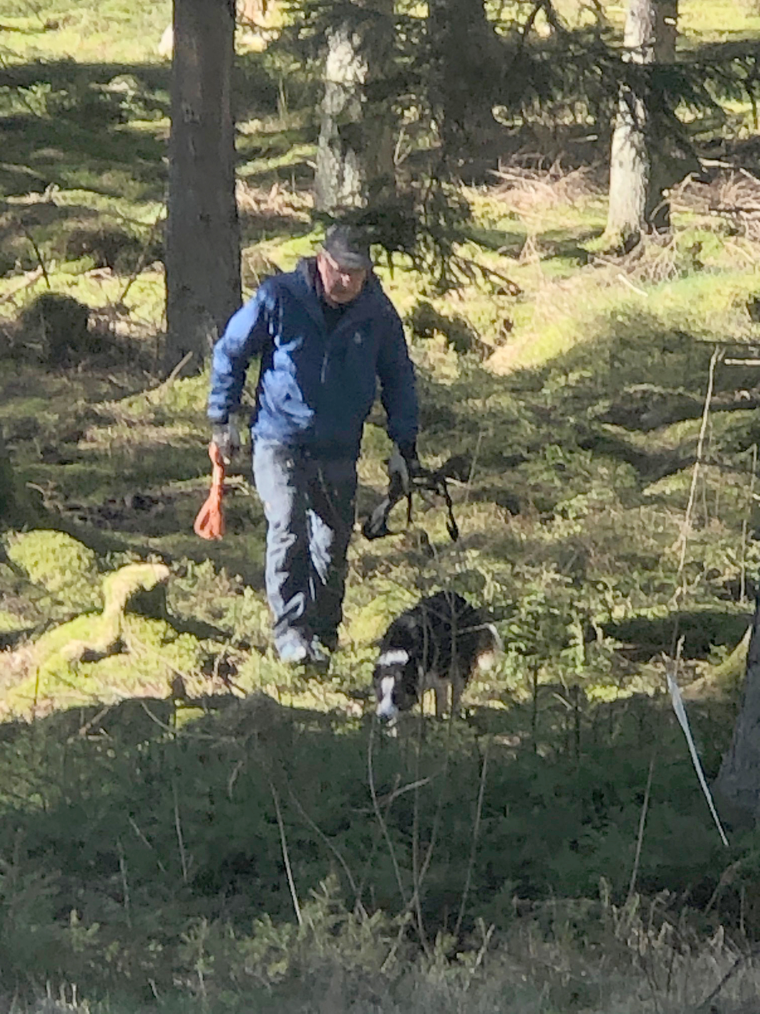 | 20200408 - Roland o Reggie tränar spår på Karlsnäs. Fokus... snart ligger slutpinnen. | ...och där låg den... |