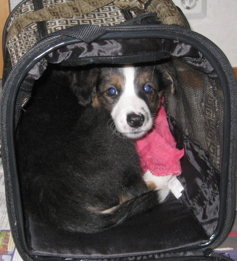 ... in i väskan och så flyg "hem" med nya hussen Roland. |