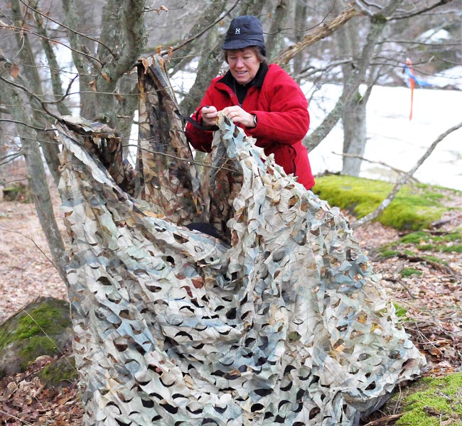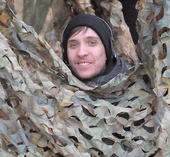 | Roland blir intervjuad ... | Inki riggar gömslet för reportern som vill känna på hur det är att vara sökfigurant ... | |