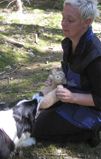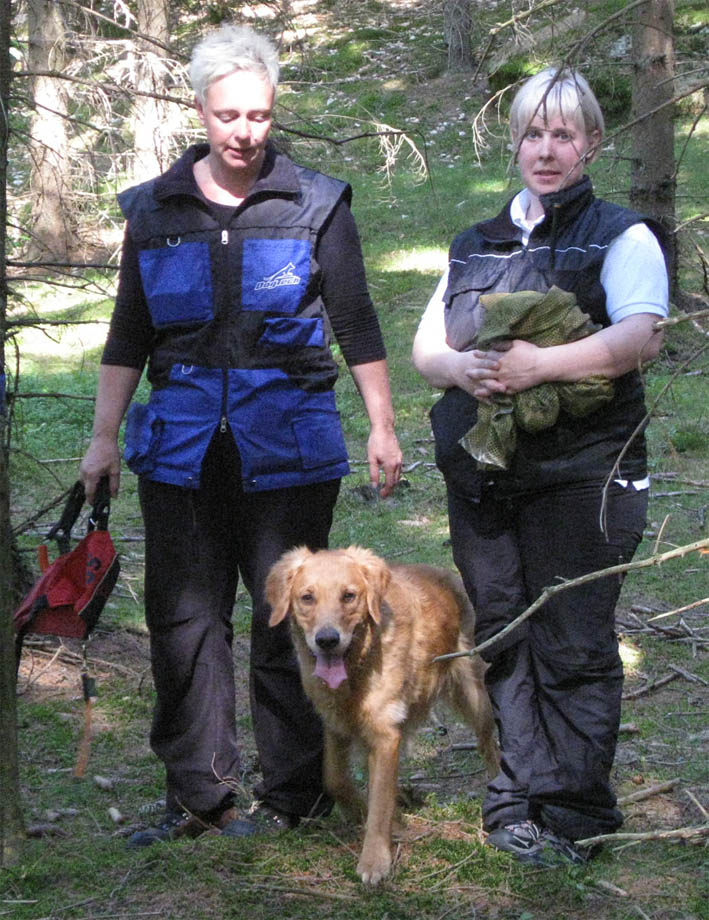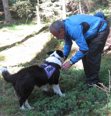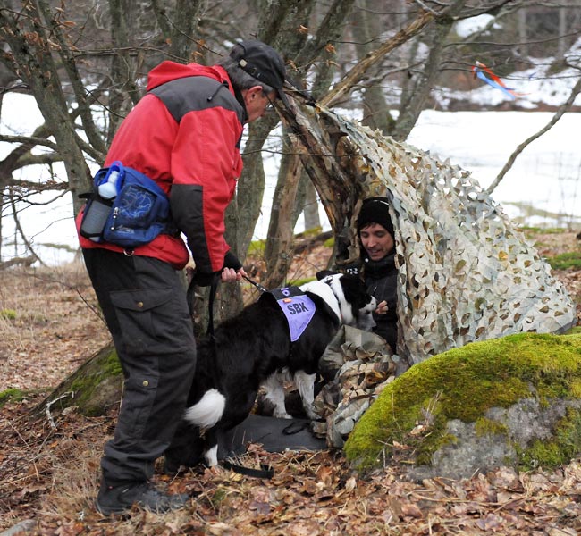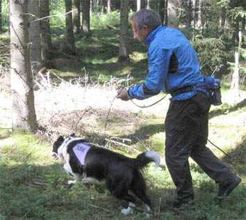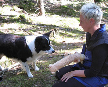 | VISA - och Zelo visar vägen till reportern/figuranten ... | ... och där är övningen slut. Zelo får köttbullar av reportern | |