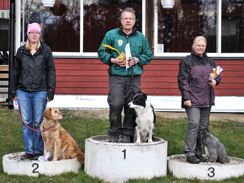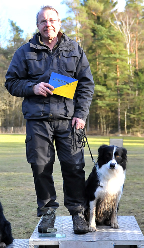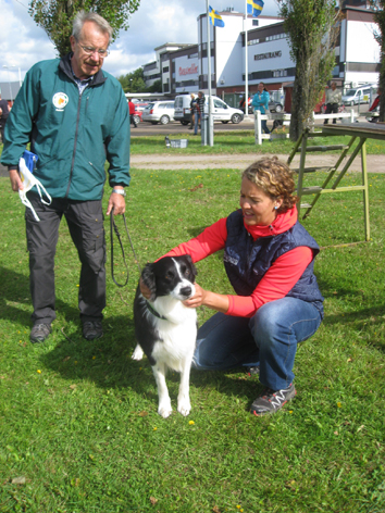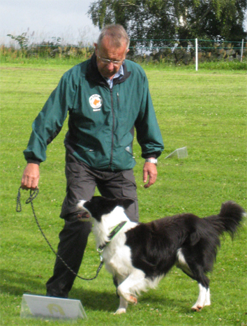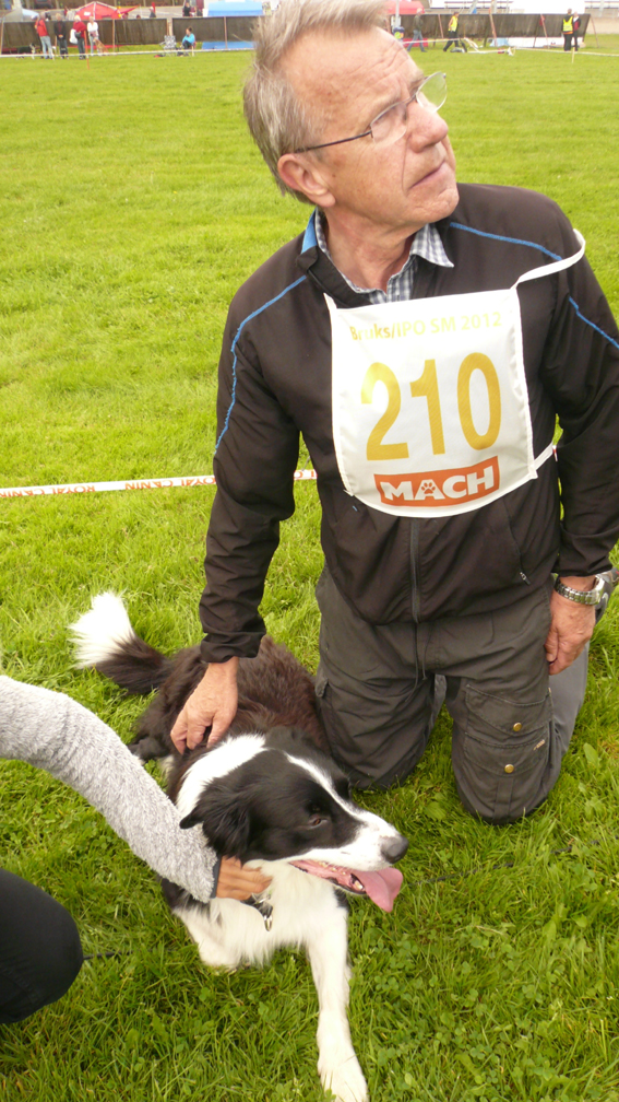 | Tyvärr missade Zelo uppletande av föremål. Zelo gick in i sökbeteende och sprang alldeles för fort. När han fann ett föremål var tiden för kort för att finna ytterligare. 5 minuter går alldeles för fort. | Söket gav 8,75 i betyg, så det var helt OK. Lydnaden var OK men framåtsändandet blev "som vanligt" lite för långt ... | Här följer några bilder från lydnaden, tagna av Stefan Mårtensson |